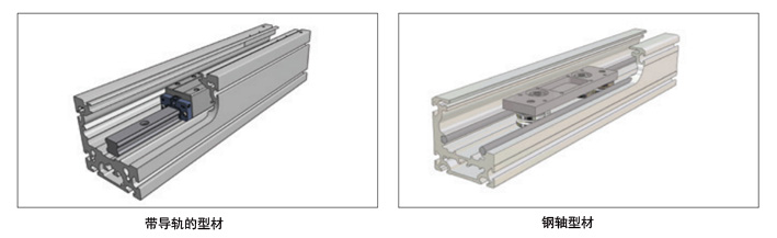 如果是直線導軌,則底座輪廓固定導軌;如果是履帶支重輪導軌,則底座輪廓固定鋼軸。導軌用螺釘固定在型材上(如下圖),鋼軸壓入型材中。除少數例外,基本型材為陽極氧化鋁型材。AXBG系列的線性軸以及AXS和AXLT系列的特殊設計基于鋼型材。基礎輪廓在很大程度上決定了線性軸的剛度。
