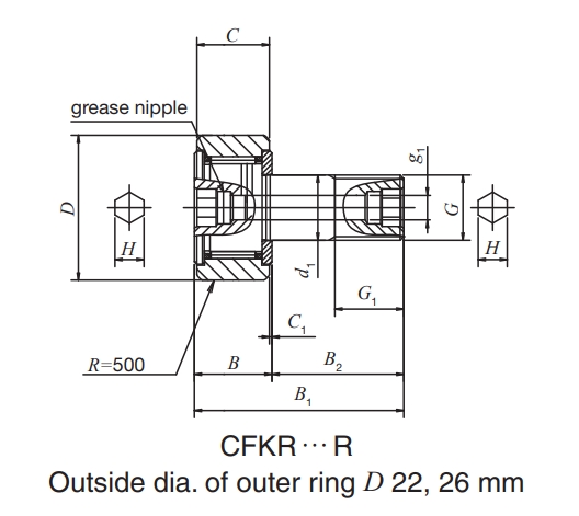 IKO CFKR22UUR軸承尺寸、參數與圖紙