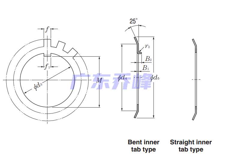 | 鎖緊墊圈 - 直內凸耳型 - 尺寸 | |